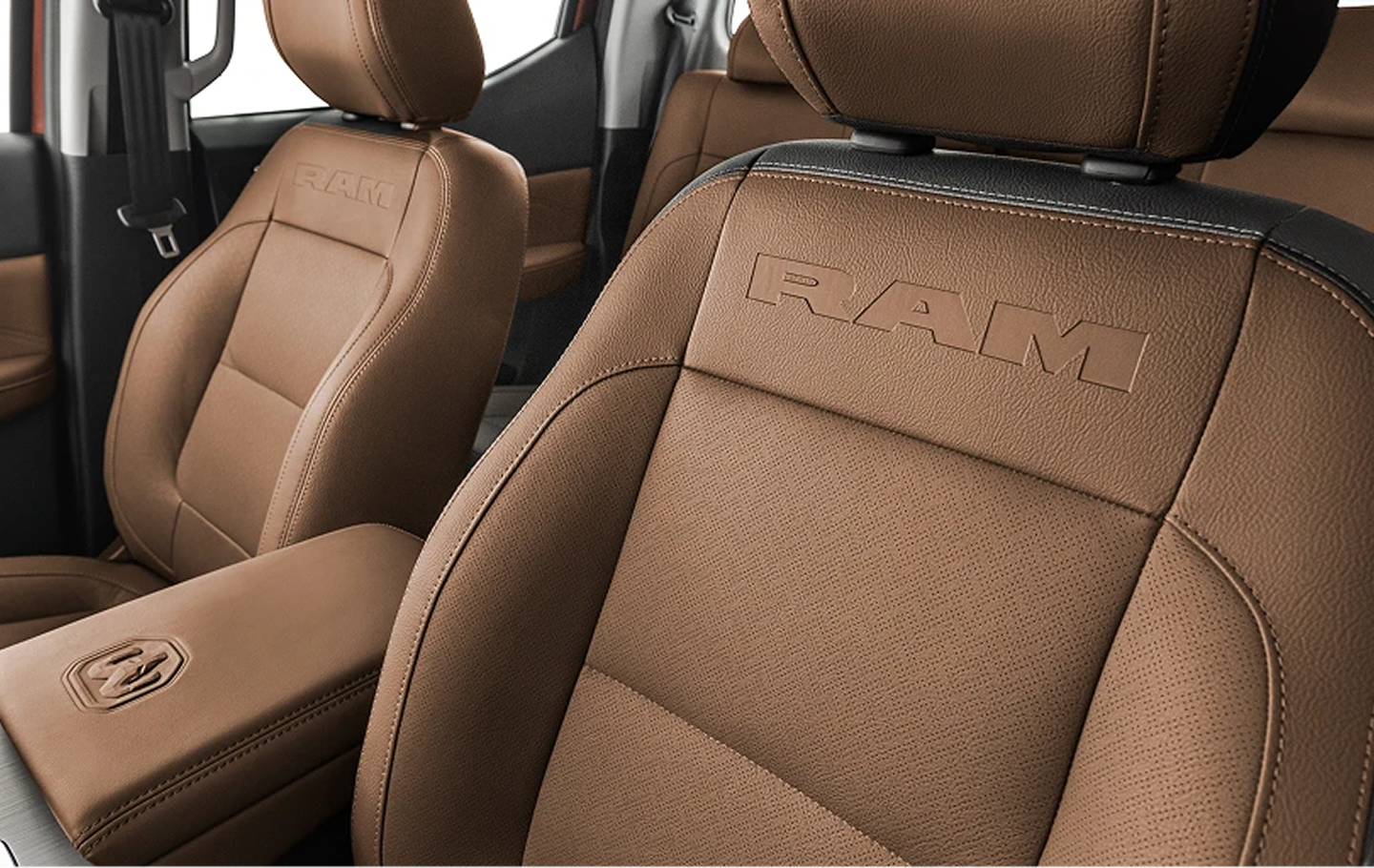 A RAM Dakota entrega um interior sofisticado, com materiais nobres, acabamento soft-touch e soluções inteligentes que elevam o conforto a outro nível.